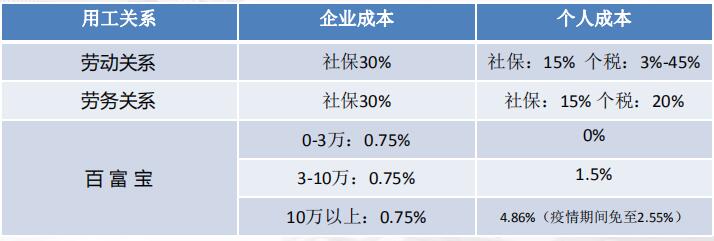 大部分納稅成本包含在支付給百富寶平臺的服務(wù)費中,間接享受部分地區獨有的稅收優(yōu)惠政策。